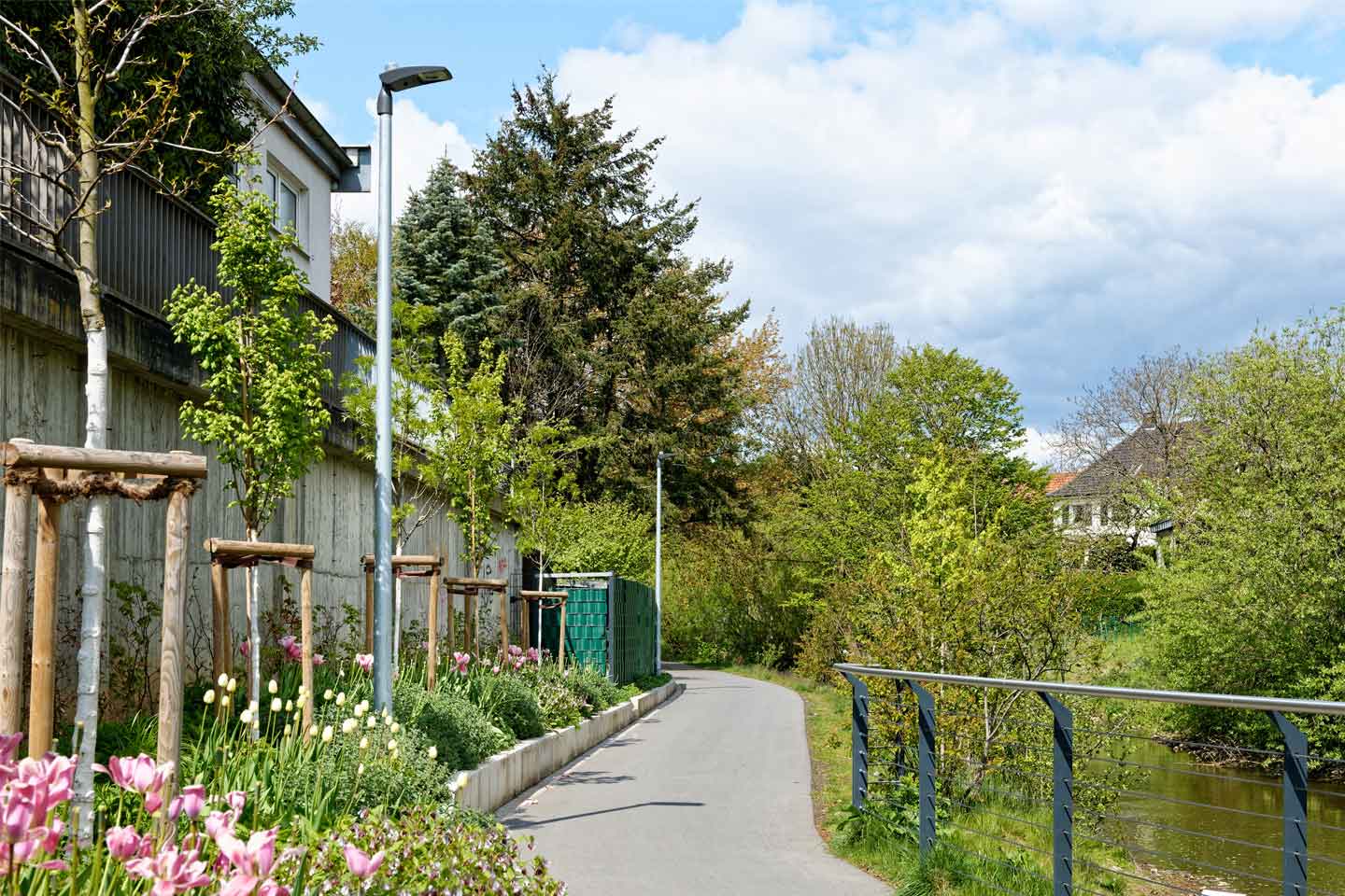 Atunci când a iluminat din nou pista de biciclete care se întinde de-a lungul râului Borkener Aa, consiliul local a dorit un sistem de iluminat adaptabil cu senzori de mișcare pentru a limita la minimum numărul de ore de funcționare a aparatelor de iluminat.