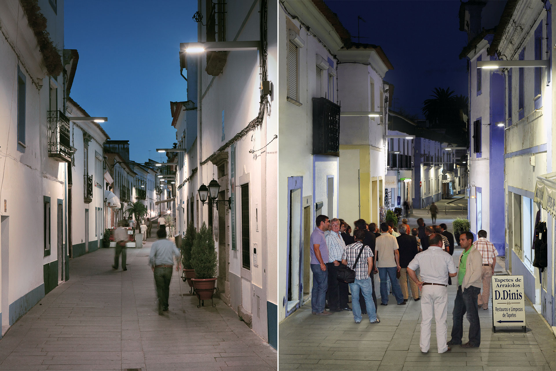 Acum ne putem bucura de spațiile publice din Arraiolos 24 de ore din 24, în siguranță și confort . Tehnologia LED este cunoscută pentru redarea excepțională a culorilor și ne permite să ne bucurăm cu adevărat de culoarea și bogăția arhitecturală a clădirilor și spațiilor verzi, chiar și noaptea.